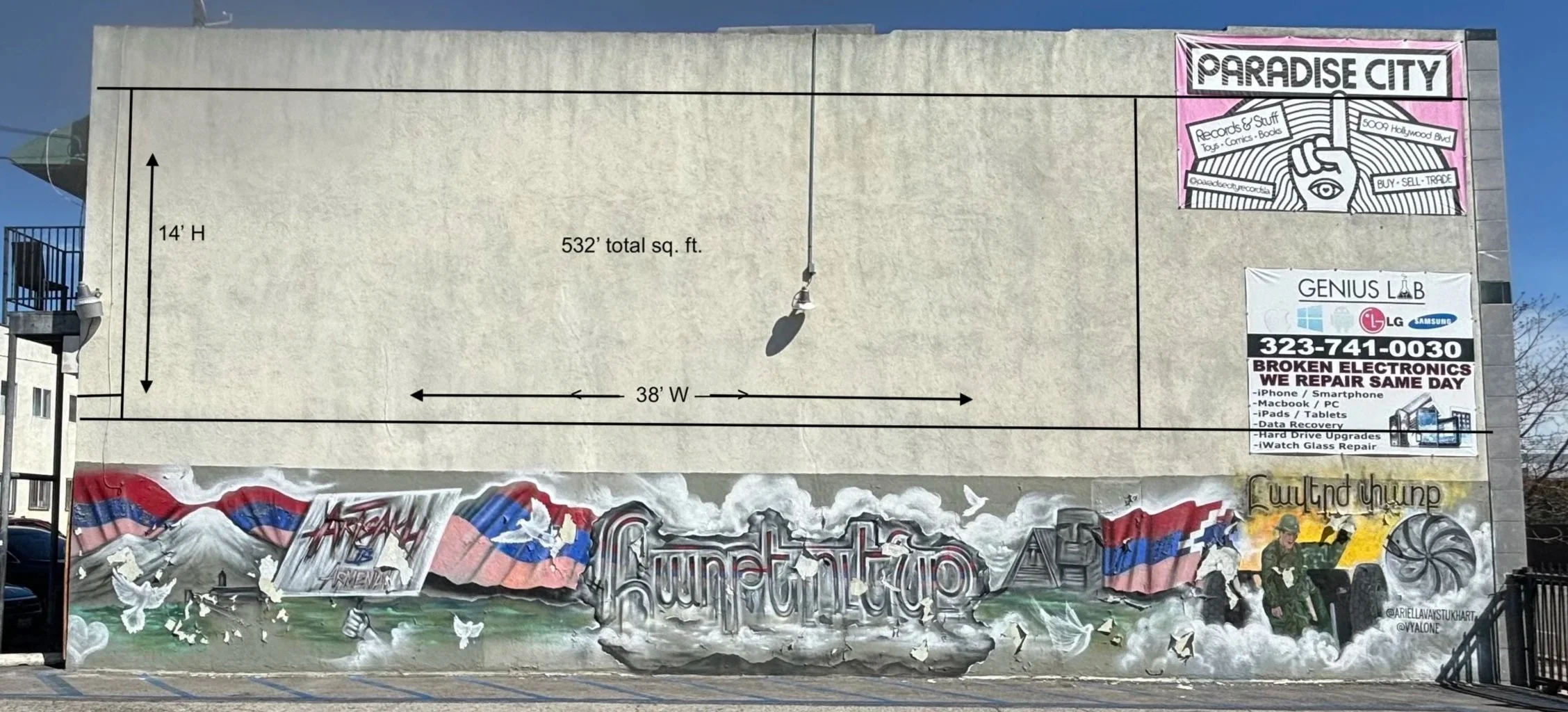 Made possible through a collaboration with L.A.'s Department of Cultural Affairs MuralWorks Program, a mural honoring local residents and histories of East Hollywood will be painted in Spring 2026 near the intersection of Normandie and Hollywood Blvd by me and local youth apprentices.